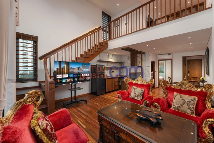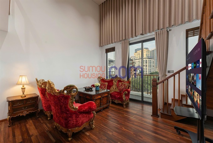Duplex serviced apartment for rent, 2 bedrooms, located on Pham Huy Thong Street, Giang Vo Ward, Hanoi.